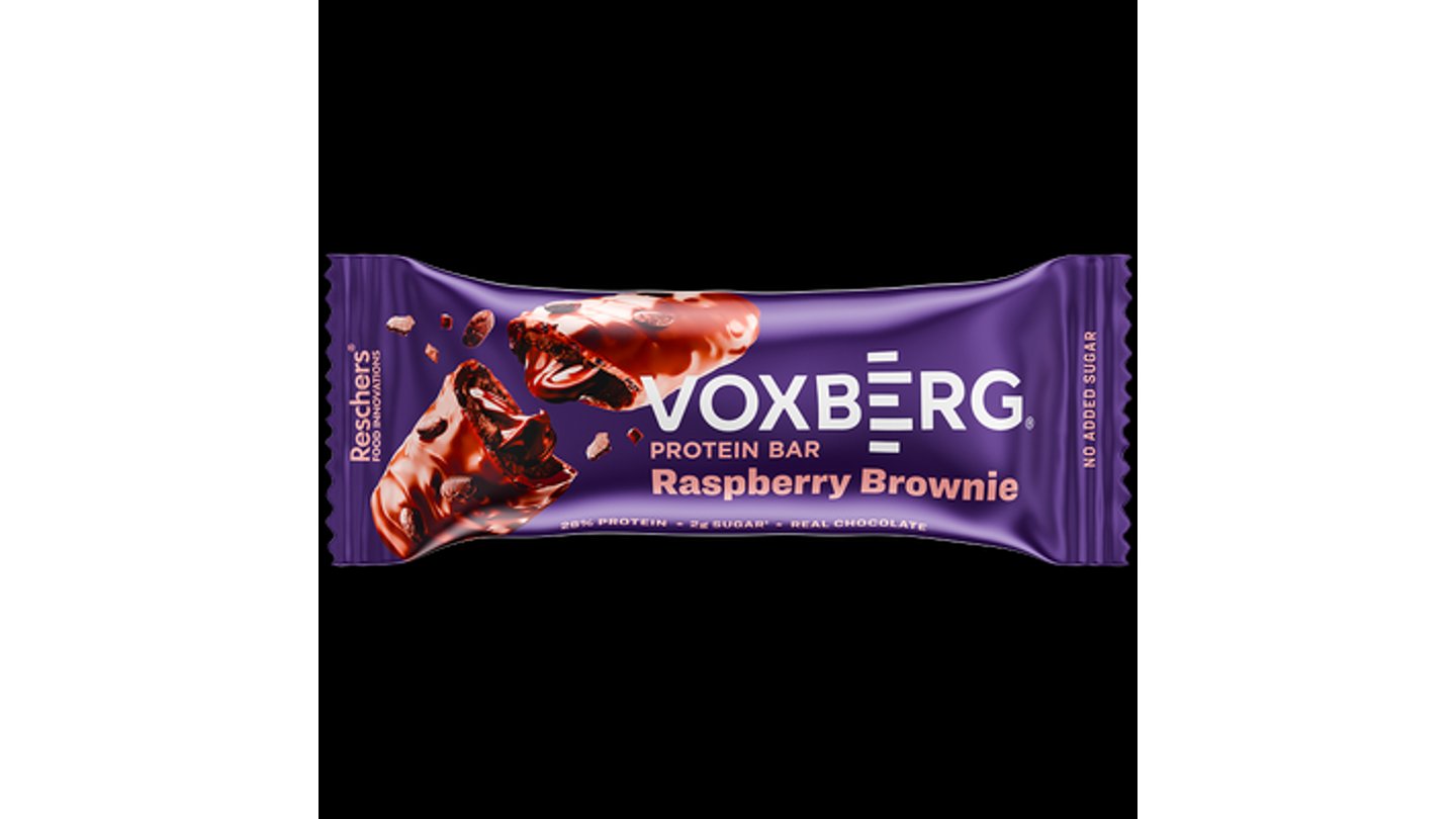 Proteínová tyčinka s príchuťou malinového brownie v mliečnej čokoláde. Obsahuje sladidlá. Obsahuje prírodné cukry. Zloženie: mliečne bielkoviny 22%, mliečna čokoláda so sladidlom 22% (sladidlo: maltitol; kakaové maslo, sušené plnotučné mlieko, kakaová hmota, kakaový prášok so zníženým množstvom tuku, emulgátor: lecitíny; prírodná aróma), sladidlo: maltitol; krém (rastlinný tuk (kokosový), sladidlo: maltitol;, mliečne bielkoviny, kakaový prášok so zníženým množstvom tuku, emulgátor: lecitíny; aróma), zvlhčovadlo: glycerol; hydrolyzovaný kolagén, vláknina z koreňa čakanky, repkový olej, kakaový prášok so zníženým množstvom tuku, pražené kakaové bôby sekané, malinový koncentrát 0,9%, emulgátor: lecitíny; arómy, jedlá soľ, sladidlo: sukralóza. Nadmerná konzumácia môže mať laxatívne účinky. Môže obsahovať glutén (max. 20 mg/kg), vajcia, sóju, sezam, arašidy a orechy. Výživové údaje na 100 g Energia 1648 kJ/395 kcal Tuky 18 g z toho nasýtené mastné kyseliny 8,0 g Sacharidy 39 g z toho cukry 4,0 g Z toho polyoly 27 g Vláknina 4,0 g Bielkoviny 28 g Soľ 0,39 g