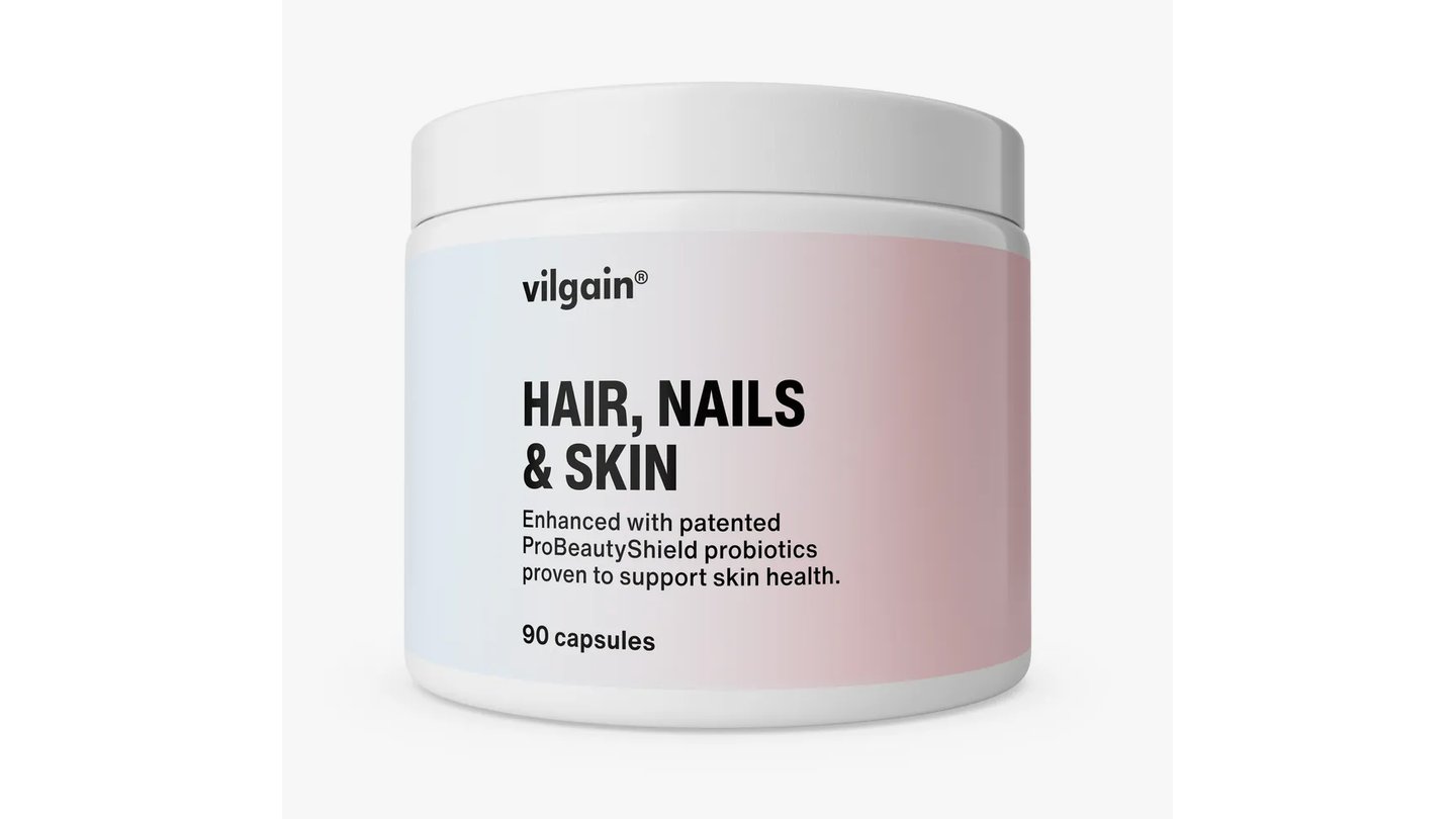 probiotika, vitaminy a minerální látky podporující zdraví kůže, vlasů a nehtů, v rostlinných kapslích
