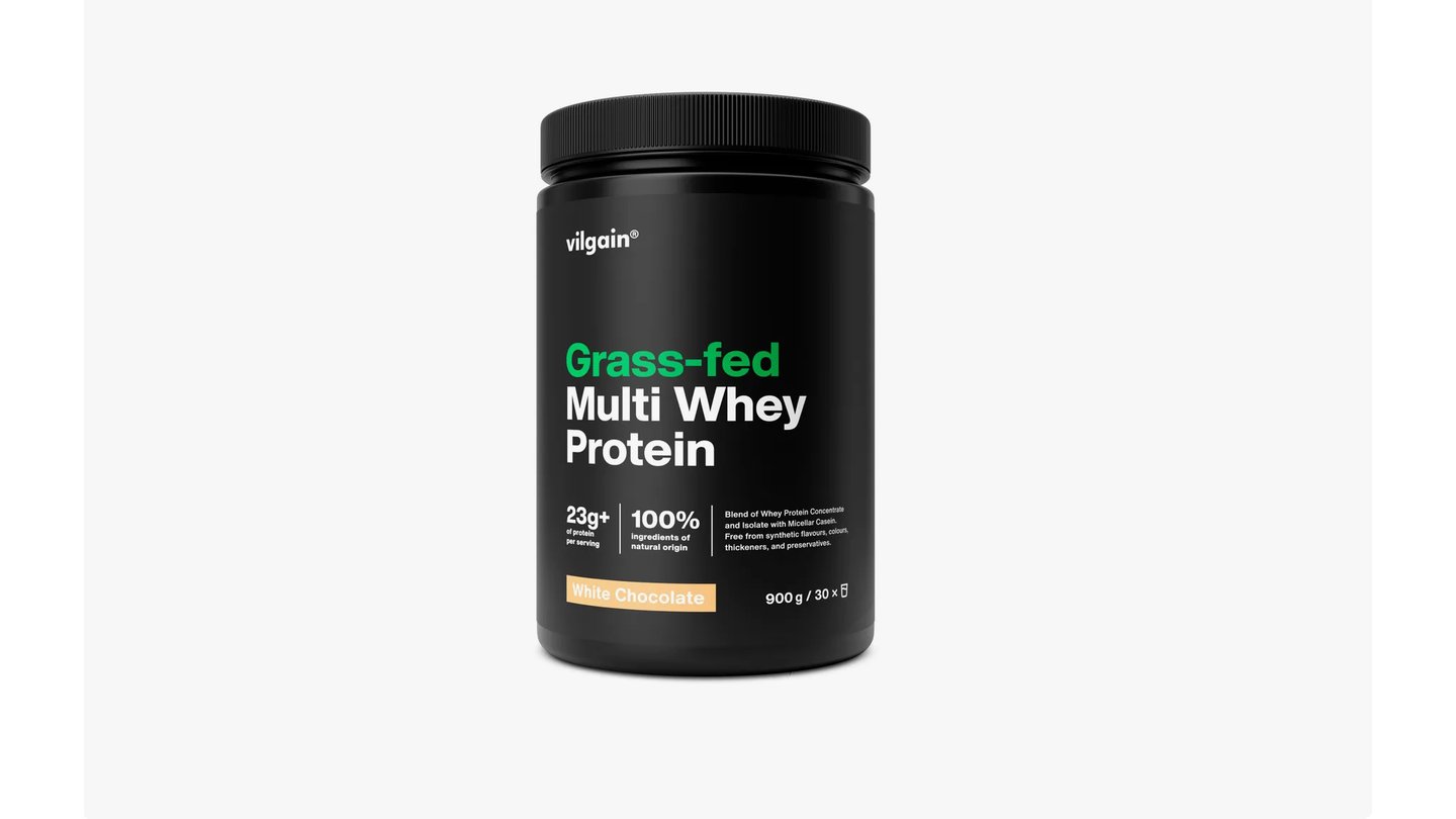 Ingredience Směs mléčných proteinů (syrovátkový proteinový koncentrát, micelární kaseinový izolát, syrovátkový proteinový izolát, emulgátor: slunečnicový lecitin) 97 %, přírodní aromata, Lactospore® (Bacillus coagulans), sladidlo: steviol‑glykosidy, DigeZyme® (alfa amyláza, proteáza, laktáza, lipáza, celuláza), mletá vanilka. *Z ekologického zemědělství Upozornění pro alergiky: Alergeny jsou vyznačeny tučně ve složení produktu. Výrobek může obsahovat stopy arašídů a skořápkových plodů. Výživové údaje 100 g 30 g Energetická hodnota 1603 kJ / 379 kcal 481 kJ / 114 kcal Tuky 4,5 g 1,4 g - z toho nasycené mastné kyseliny 2,9 g 0,9 g Sacharidy 6,7 g 2 g - z toho cukry 5,5 g 1,6 g Bílkoviny 77,7 g 23,3 g Sůl 0,4 g 0,1 g Profil aminokyselin: 100 g* Esenciální aminokyseliny Isoleucin 5,9 g Leucin 10 g Lysin 8,6 g Methionin 2 g Fenylalanin 3,4 g Threonin 6,4 g Tryptofan 1,6 g Valin 5,9 g Semiesenciální aminokyseliny Histidin 1,9 g Arginin 2,7 g Neesenciální aminokyseliny Kyselina asparagová 10,1 g Glutamin 18,2 g Glycin 1,8 g Alanin 4,5 g Prolin 7 g Serin 4,9 g Tyrosin 3,3 g Cystein 1,8 g