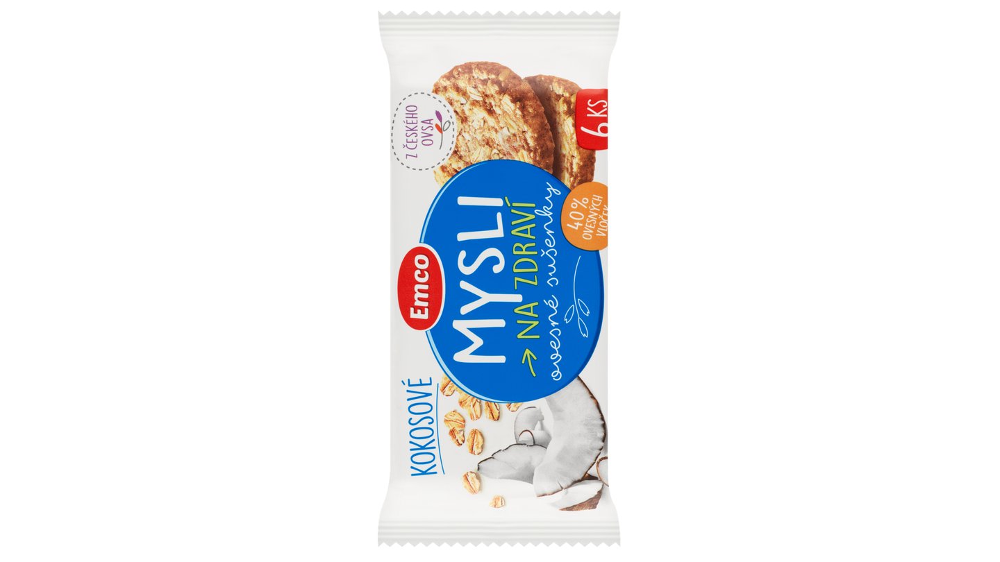Celozrnné ovesné vločky 40 % s kokosem.