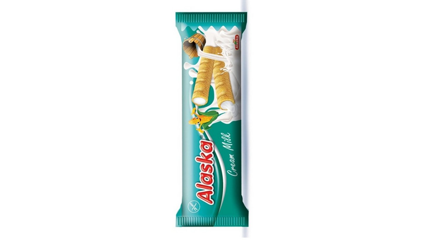 Bezlepková křupavá kukuřičná trubička plněná jemným, nízkotučným mléčným krémem.
