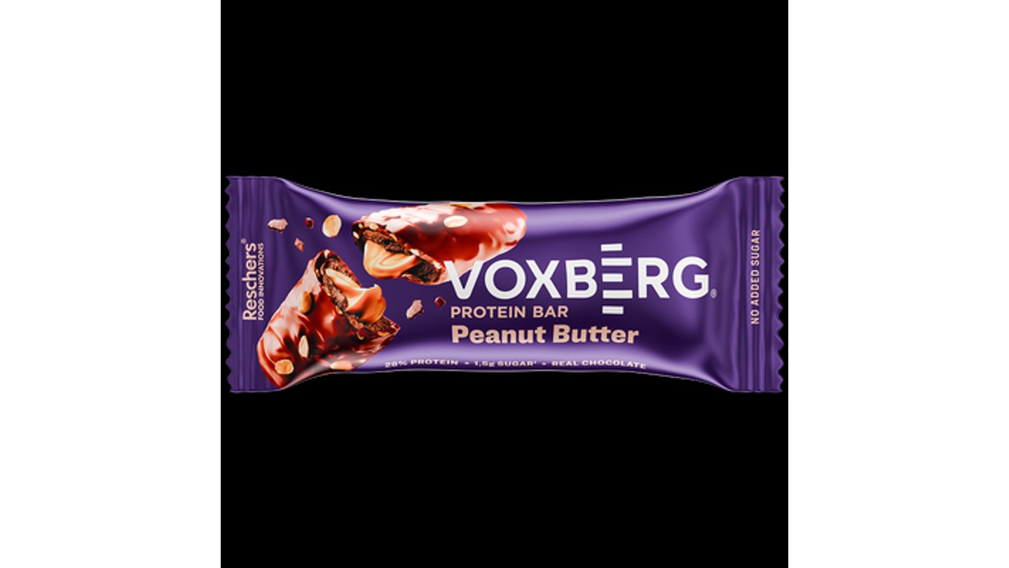 Proteínová tyčinka s arašidovým krémom v mliečnej čokoláde. Obsahuje sladidlá. Obsahuje prírodné cukry. Zloženie: mliečne bielkoviny 22%, mliečna čokoláda so sladidlom 22% (sladidlo: maltitol; kakaové maslo, sušené plnotučné mlieko, kakaová hmota, kakaový prášok so zníženým množstvom tuku, emulgátor: lecitíny; prírodná aróma), sladidlo: maltitol; arašidový krém 12% (sladidlo: maltitol; rastlinné tuky (kokosový, repkový), mliečne bielkoviny, arašidová pasta 15%, kakaové maslo, emulgátor: lecitíny; aróma, farbivo: extrakt z papriky; jedlá soľ), zvlhčovadlo: glycerol; hydrolyzovaný kolagén, vláknina z koreňa čakanky, repkový olej, kakaový prášok so zníženým množstvom tuku, sekané arašidy pražené, sušené odtučnené mlieko, emulgátor: lecitíny; aróma, jedlá soľ, sladidlo: sukralóza. Nadmerná konzumácia môže mať laxatívne účinky. Môže obsahovať glutén (max. 20 mg/kg), vajcia, sóju, sezam a orechy. Výživové údaje na 100 g Energia 1668 kJ/400 kcal Tuky 19 g z toho nasýtené mastné kyseliny 9,0 g Sacharidy 39 g z toho cukry 3,0 g Z toho polyoly 27 g Vláknina 4,0 g Bielkoviny 28 g Soľ 0,51 g